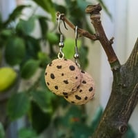 Handmade chocolate chip cookie earrings made from polymer clay.